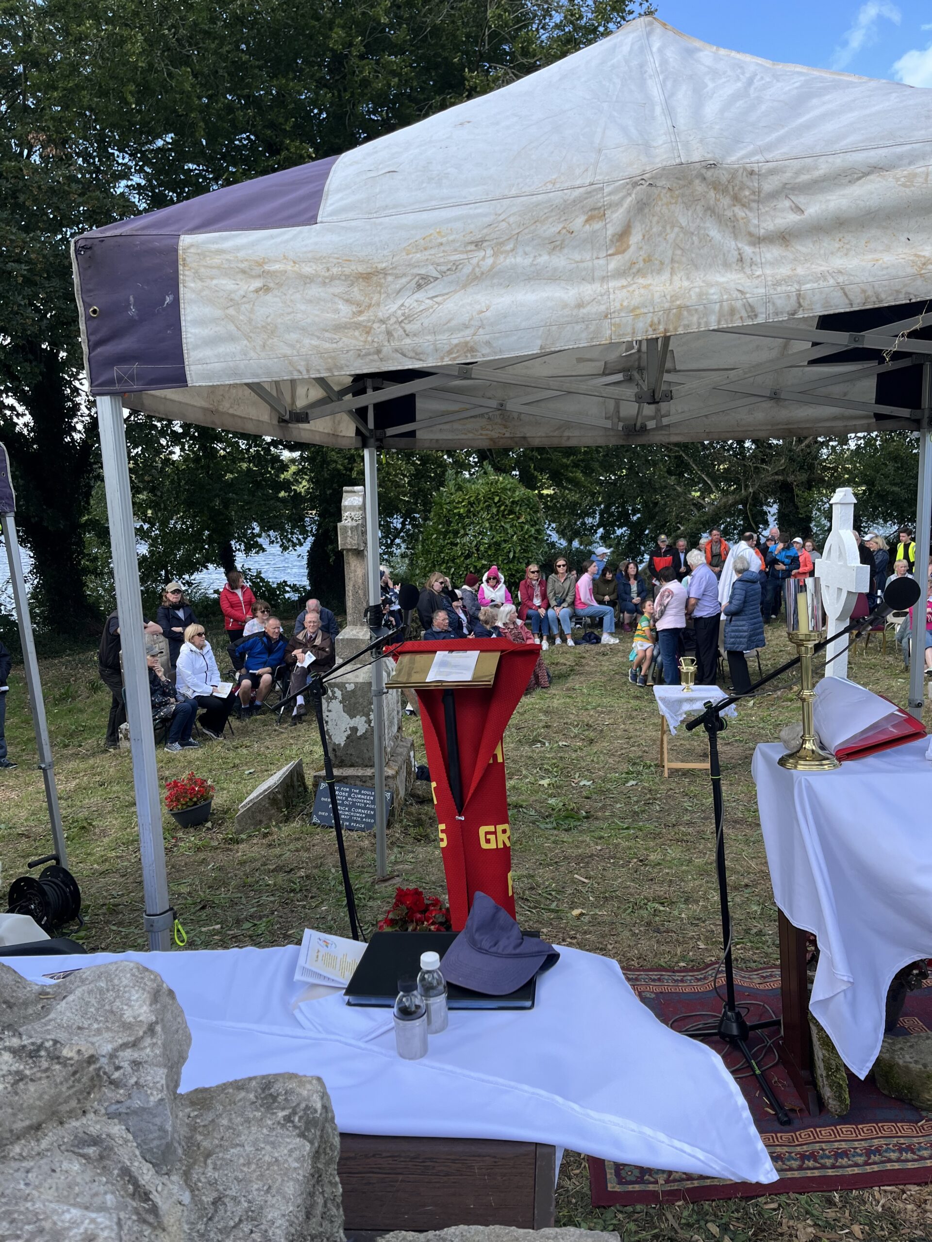 The Mass was transmitted to the shore for a good number of people who were unable to travel across to the Island.