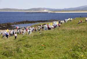 On Sunday last, 13 July 2025, a group of approximately 60 people went on a Jubilee Year pilgrimage from St Dallan’s Church in Kildallan, Co. Cavan to St Dallan’s burial place on Inniskeel Island off the coast of Donegal. They received a great welcome and great hospitality from the parishioners of St Conal’s Church in Kilclooney before walking along with them at low tide out to Inniskeel Island where both St Conal and St Dallan are buried. The local priest, Fr Philip Daly, led the prayers at the various stations on the island and Msgr Liam Kelly led the Benediction prayers in St Conal’s Church to bring the pilgrimage to a close. It was a blessed and happy day for all.