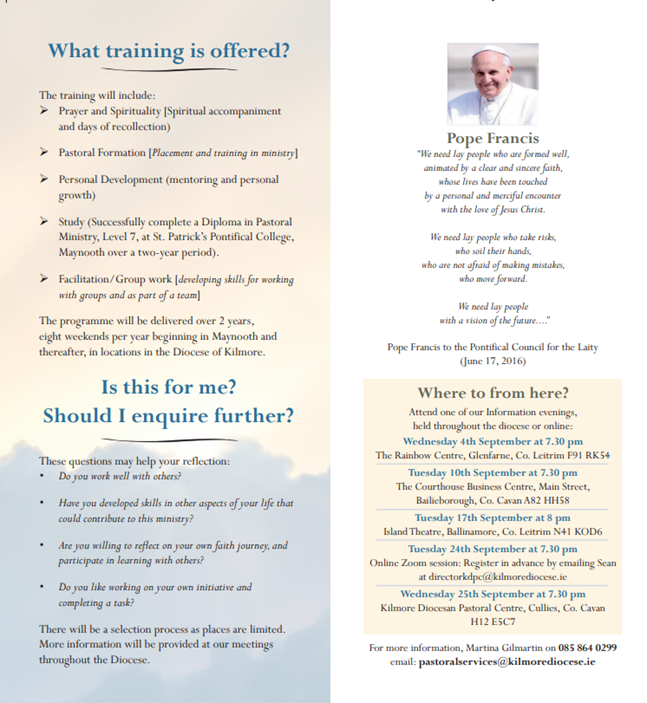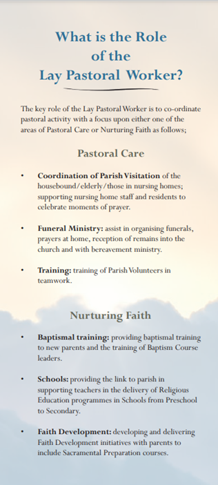 Information regarding the new Ministry of Lay Pastoral Worker in the Diocese of Kilmore is published below.